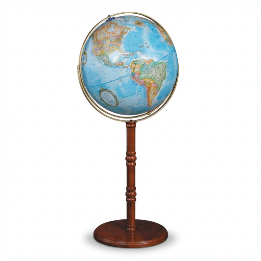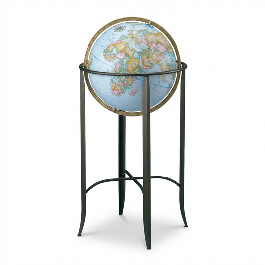 A floor globe commands a room the way nothing else can. It says: curious, well-traveled, and going further. Handcrafted since 1930, built for the spaces that matter.