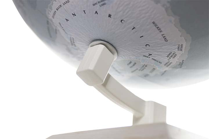 The Berkner is an extraordinary globe with an up-to-date political map and a gorgeous two-tone color palette that offers both style and function.  Explore over 3,000 place names on this globe but be sure to let your fingertips do the walking so you can appreciate the unique soft “velvet-like” finish of the globe.  This globe also features a unique “raised relief” embossing that provides a 3D-like texture to the mountain terrain.  The globe ball is complemented by a uniquely styled white wood base made from solid ash and matching inclination bracket.  The Berkner Globe from Replogle’s Designer Series is the perfect accent piece for any room.