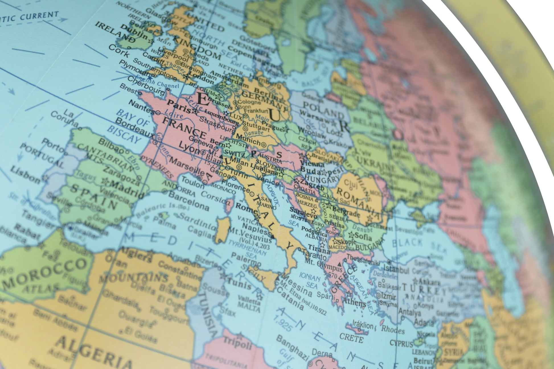 The map is rich, precise, and legible, with clear country borders, typography, and geographic labeling. This isn’t a simplified or cartoon-style globe — it rewards close inspection.